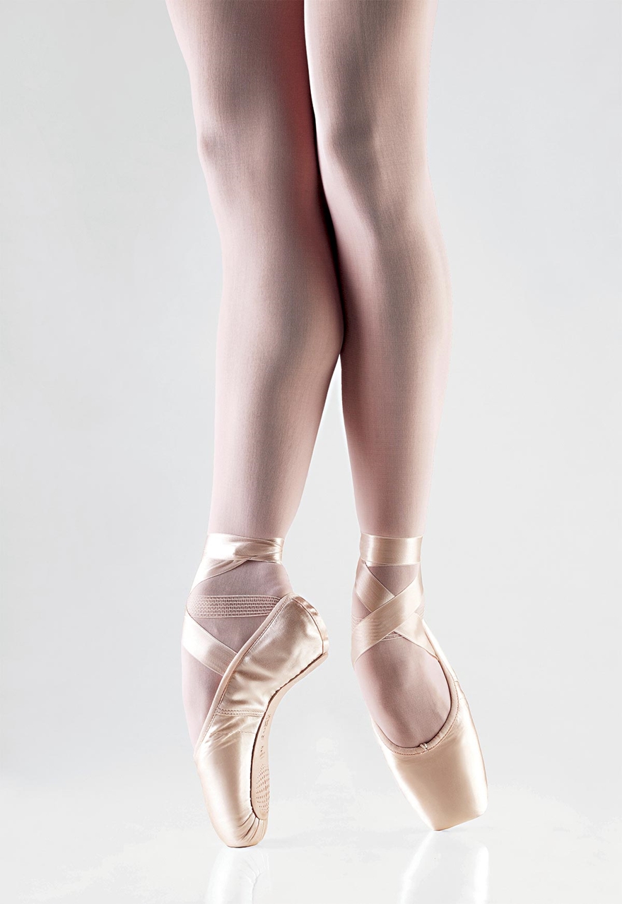 Sapatilha de ponta com pré-arco indicada para pés gregos.